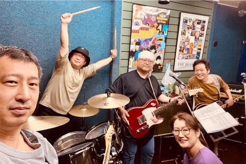 ↑左から、うにゃさん、おーさま、たけぽん、かつらちゃん、かっぺーさん どもどもニシナガレの赤い狸担当、たけぽんです! ま、そんなこんなでニシナガレ練習デーでございまして、今日は4曲ほど、やいのやいの意見出しながら、今回のライブ用にあわせました…